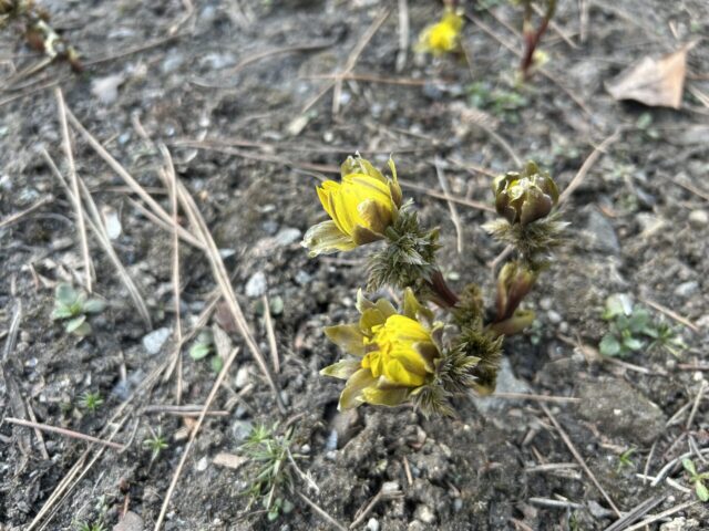 道端にはフキノトウやフクジュソウが顔を出しています。去年よりは早いかな。